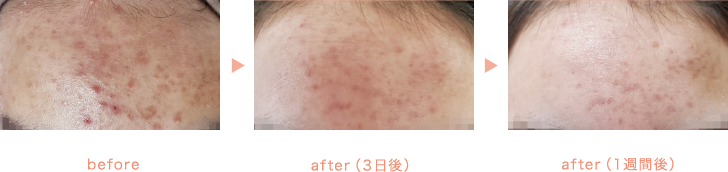 この治療を1ヶ月毎に3回くらいすると、かなりキレイになりますが、新しいニキビができないように、コントロールする必要がありますので、薬の内服や外用薬も必要です。