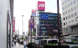 2. 高島屋前を建物に沿って左折し、ひとつ目の交差点で右側への横断歩道を渡ります。