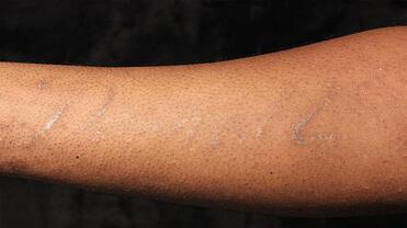 広範囲に渡ってしっかりと濃い色が入っているタトゥーでも、レーザーを照射することで、随分と目立たなくなっています。