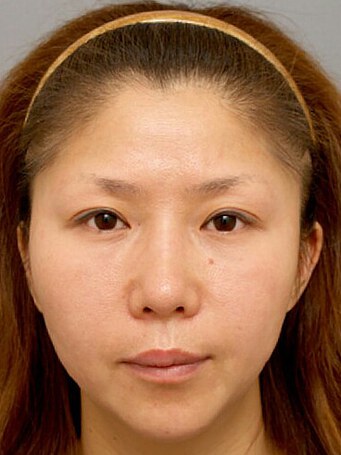 ポニーテールリフト(小切開こめかみリフト)でたるみを改善された方。リフトアップ効果で、下がり気味だった眉毛や目が引き上げられ、顔立ちにメリハリが出ました。またあごなどのフェイスラインもくっきり。手術前より小顔に見えます。