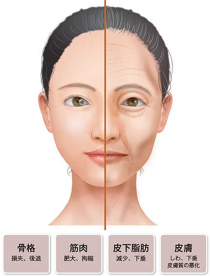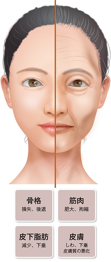 深いしわや溝、たるみなど、お顔にあらわれる老化現象は、皮膚だけではなく、