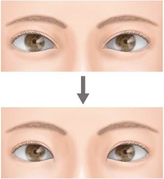 手術は、目頭から上まぶたにかけての皮膚を切開し、皮膚を広げるというもの。これによってひと回り目と目の間が離れ、目もと全体のバランスが整います。同時にやさしい印象になり、ニッコリ微笑んだときの笑顔もより魅力的なものになります。