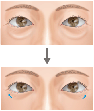 下のまつ毛の生え際で目の下のたるんだ皮膚を切除して縫い合わせることで、ハリのある肌へと修正していきます。