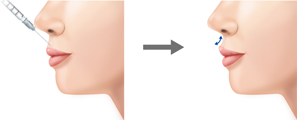 口輪筋に注入すると、筋肉の緊張が緩和され上唇がほどよく反り返り、上を向きます。