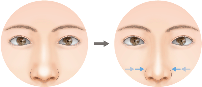 正面から見て鼻先の横幅が広い、いわゆる「団子鼻」を改善し、細くすっきりとした鼻先にするのが目的です。
