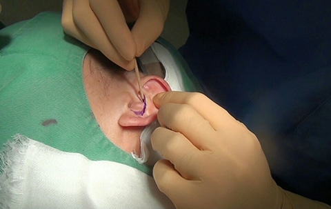 柔道耳(レッスルイヤー、カリフラワー耳)修正手術キャプチャ(写真)解説