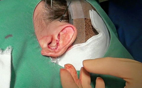 器質化軟骨を切除した後、皮弁を戻した状態です。